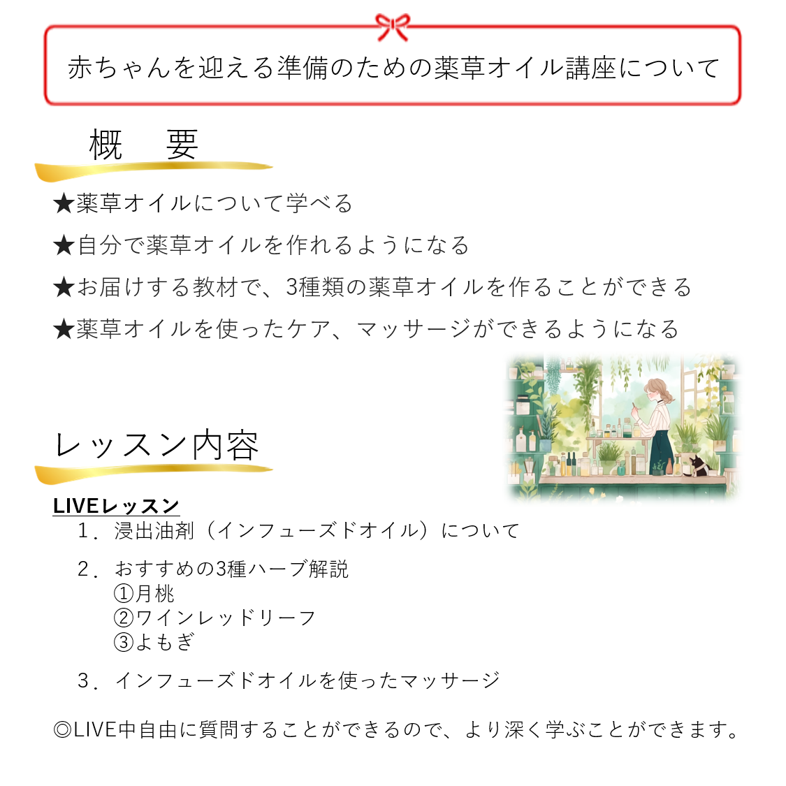 【必要な道具はすべて送られてくる/送料無料】赤ちゃんを迎える準備のための薬草オイル講座《オンライン講座》