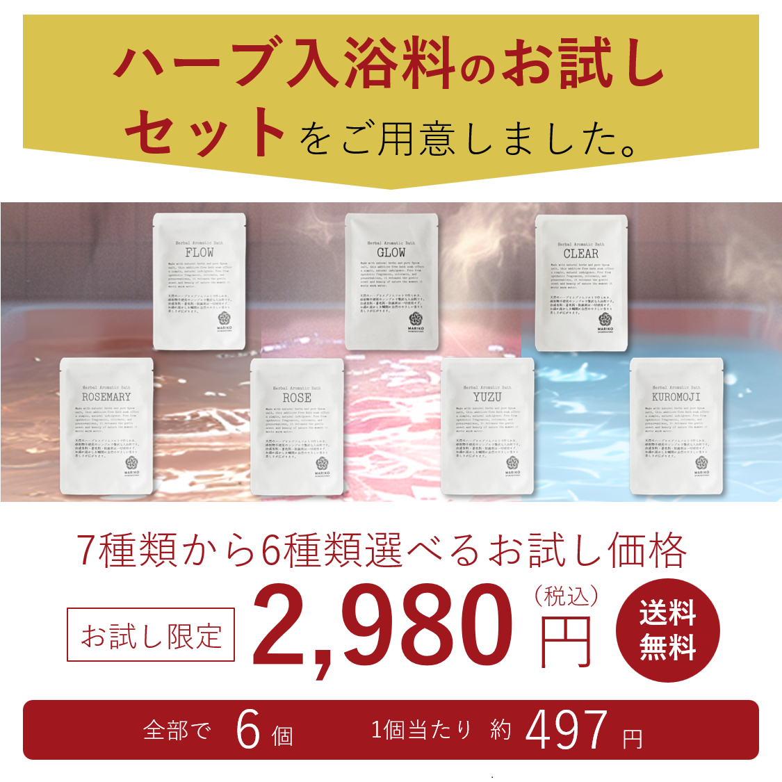 【新商品★送料無料】エプソムソルトとハーブの入浴料選べる6種お試しセット