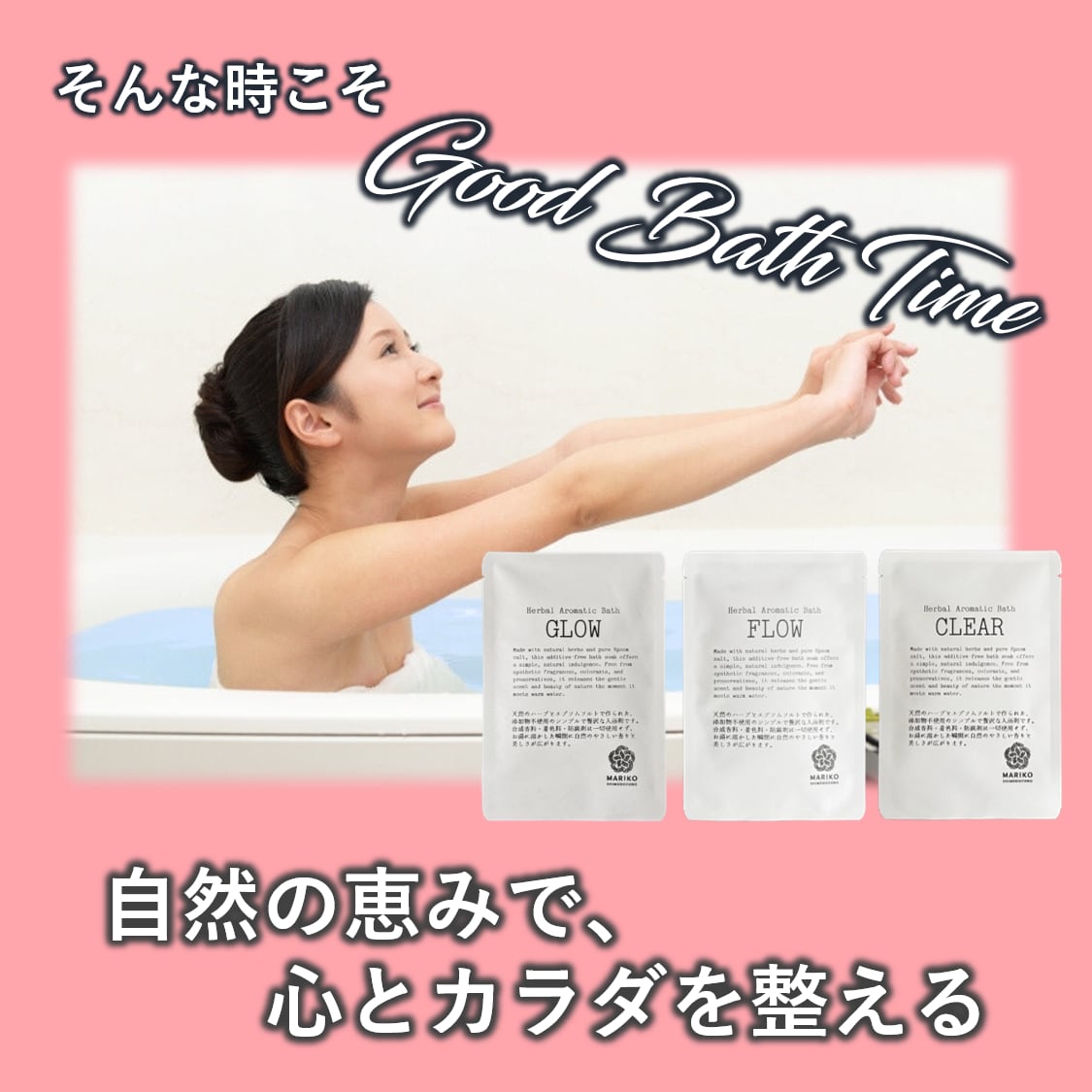 フロウ:硫酸Mg、ヨモギ葉、ローズマリー葉、カミツレ花、ワサビノキ葉