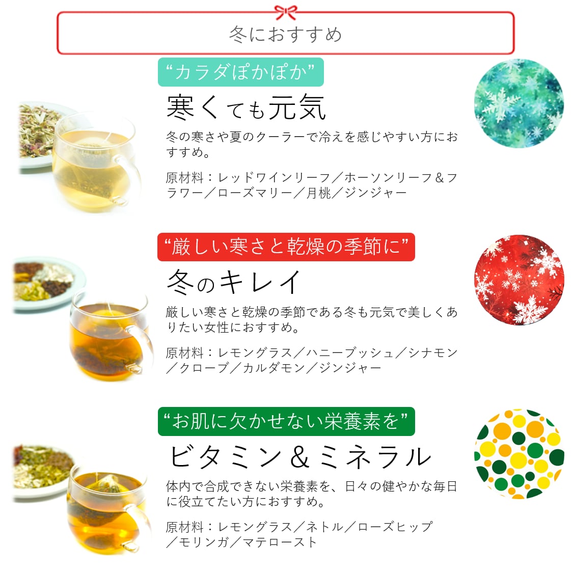 原材料:レッドワインリーフ/ホーソンリーフ&フラワー/ローズマリー/月桃/ジンジャー