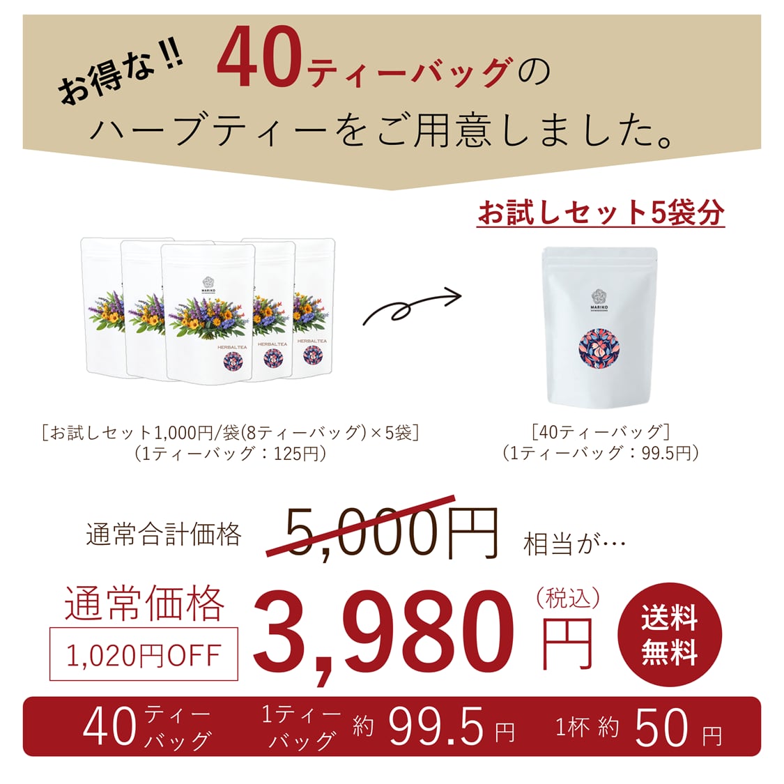 送料無料でハーブティーティーバッグ40個入りをお届けします。
